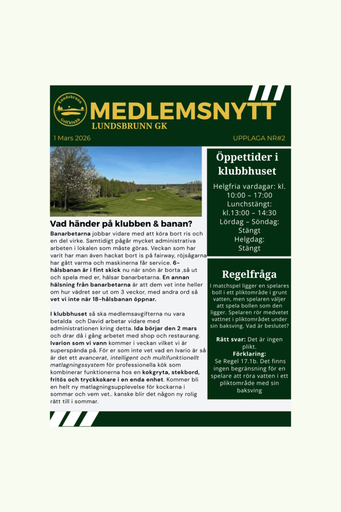Andra upplagan av medlemsnytt 2026 är ute! Gå in och läs för vad vi gör på klubben just nu, regelfrågan och vem vi tar pulsen på denna veckan!