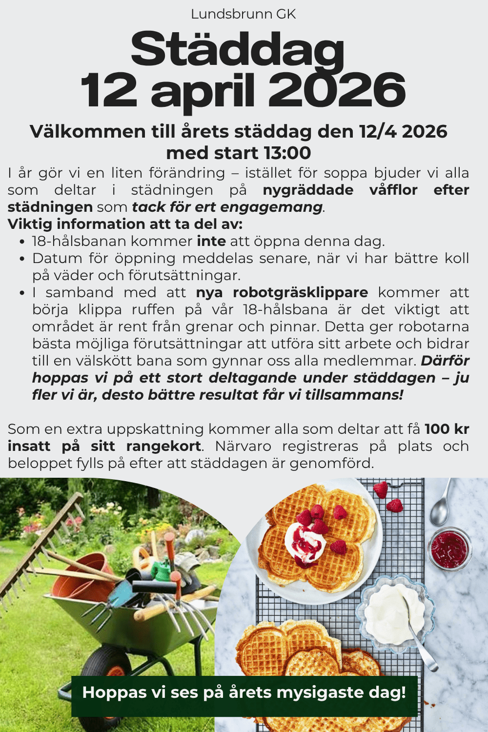 - Detta ger robotarna bästa möjliga förutsättningar att utföra sitt arbete och bidrar till en välskött bana som gynnar oss alla medlemmar. Därför hoppas vi på ett stort deltagande under städdagen – ju fler vi är, desto bättre resultat får vi tillsammans!