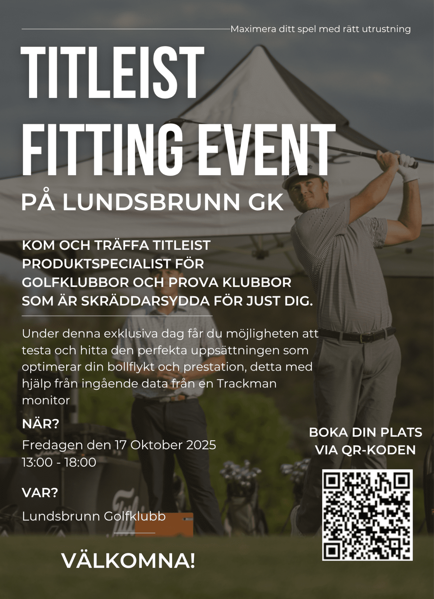 Fredagen den 17 oktober kommer Titleist för utprovning av klubbor.